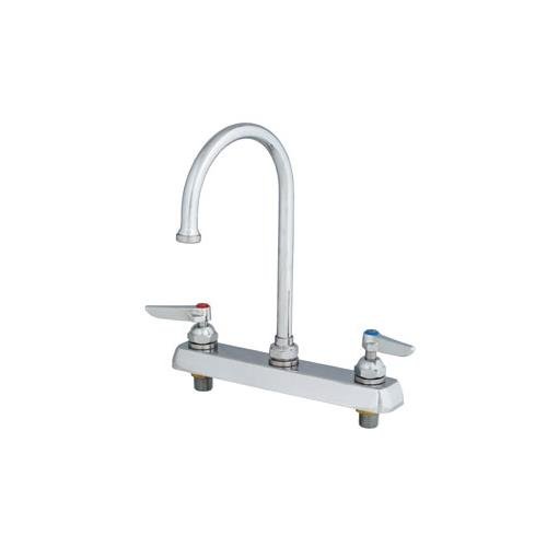 T&S Brass B-1142-XS Work Board Faucet, Deck Mount, 8" Centers, Swivel Gooseneck, Lever Handles, 2" Shanks