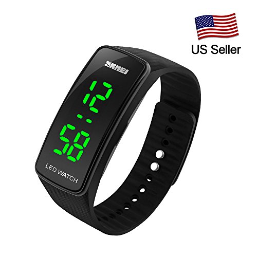 -. Feature : Rubber watch band, soft and comfortable to wear / It can display time and date, with large number for easy reading / Feature: Auto Date, LED display, Back Light / Movement of watch:Digital movement / Press the button display time, press the button again display date, prss the button again display seconds.