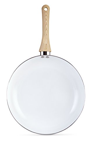 -. Feature : Spiral bottom distributes heat evenly, while ceramic interior finish keeps food from sticking / Wood-grain, soft-touch, ergonomic, stay-cool handle / Double-riveted aluminum construction / Double-layer, non-stick, Ceramic-Coated interior