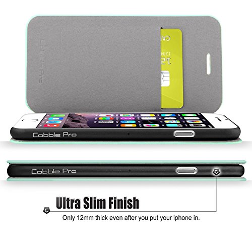 iPhone 6S Case, Cobble Pro Premium Handcrafted [Ultra Slim] Leather Wallet Case with Flip Stand Feature and ID Credit Card Slot Holder for Apple iPhone 6S / iPhone 6, Mint Green
