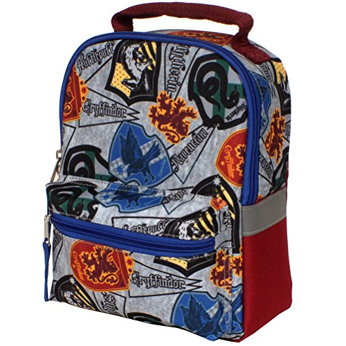 - Harry Potter insulated lunch box with a pattern of Hogwarts House Crests