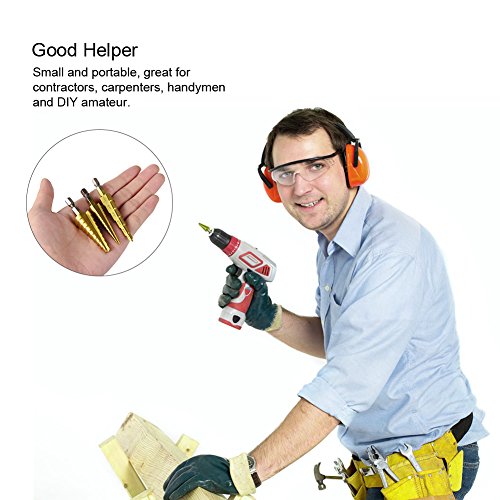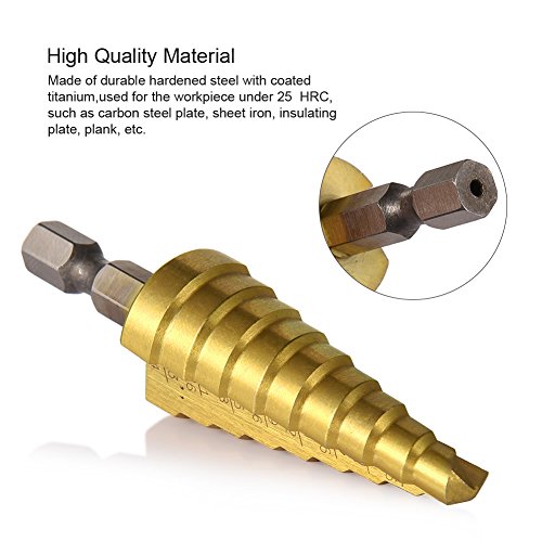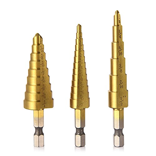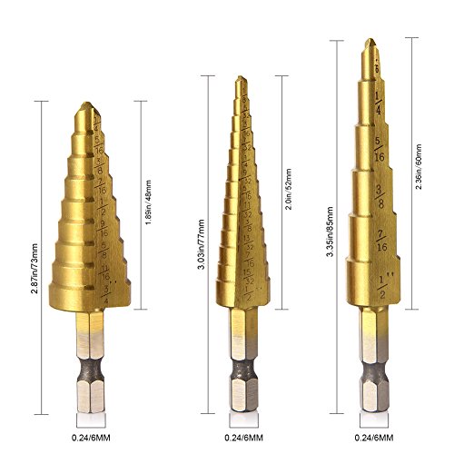 Tooltoo Hex Shank Dirlls Set Titanium Step Drill Bits Pagoda Drill Multi-function Woodworking Punching Tools for Woodworking Drilling, 3 Pcs