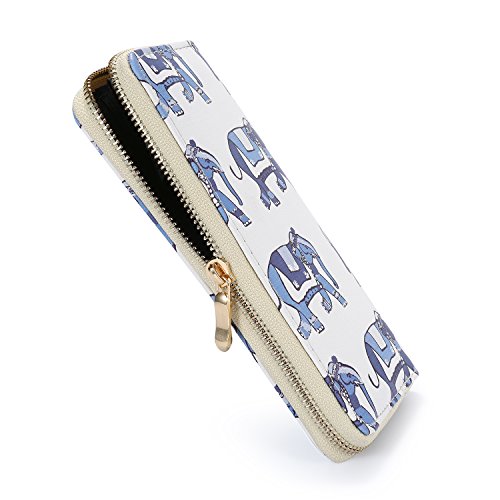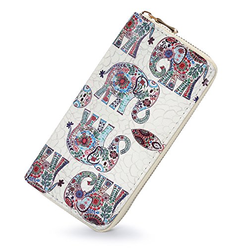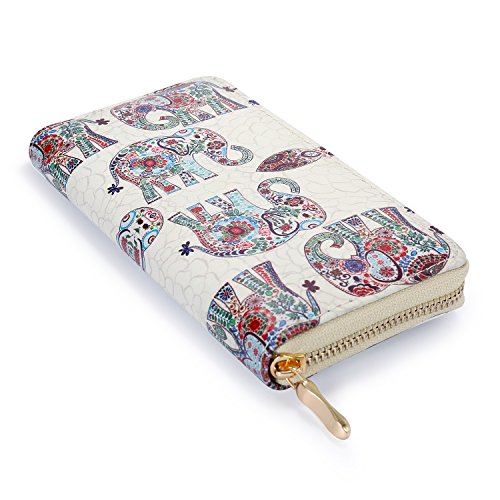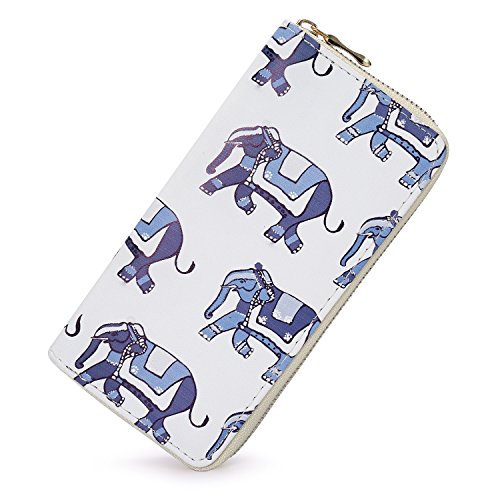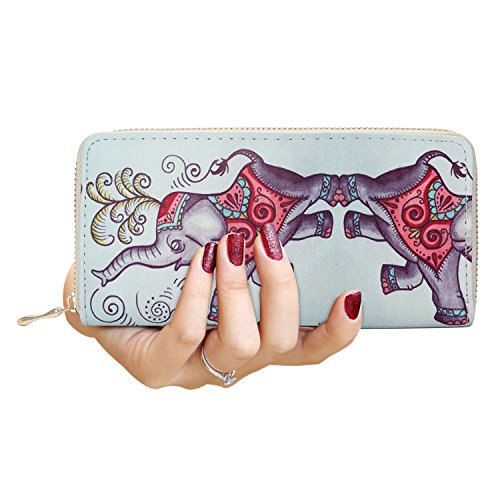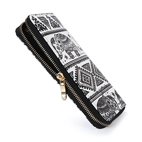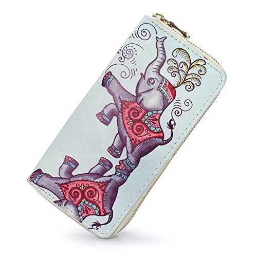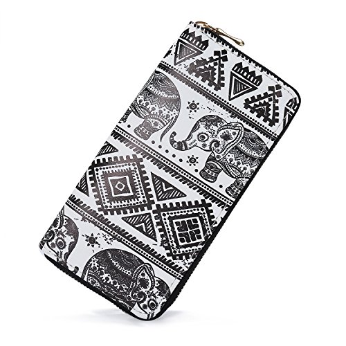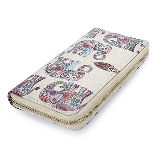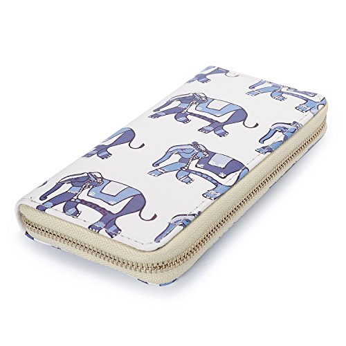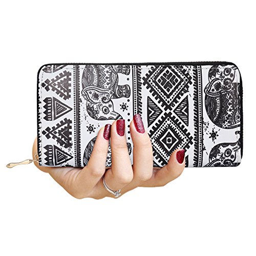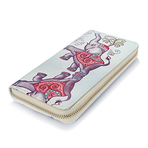 Sansarya Elephant Print Long Zipper Boho Women Wallet Clutch Ladies Card Holder