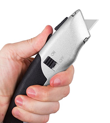 RETRACTABLE & ADJUSTABLE BLADE: Razor simply slides open to 3 different blade lengths for exact cuts. Blade easily retracts to lock safely within metal frame when finished using. The 3 inch knife flips open simply into a locking position, and may be retracted with ease by pressing the circular silver safety button