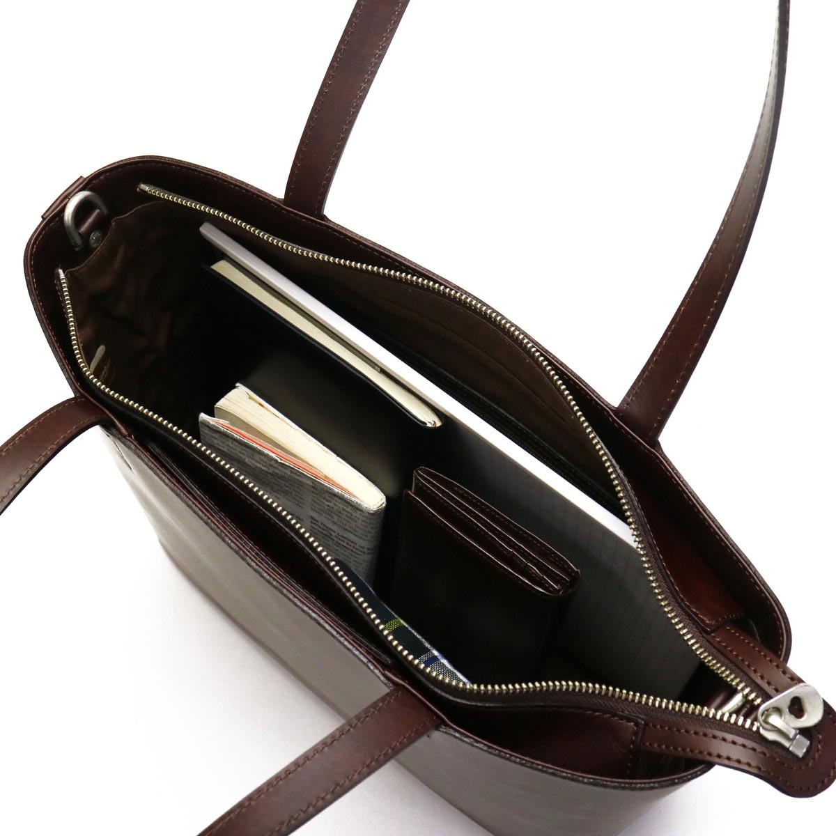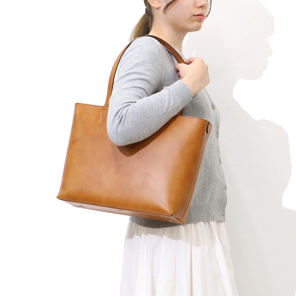 Made with particular attention to ease of use in everyday life, leather tote bag with an exquisite sense of size. With a simple design ahead of the decoration that made use of the goodness of the material, it can correspond widely to work as well as casual use on holiday.