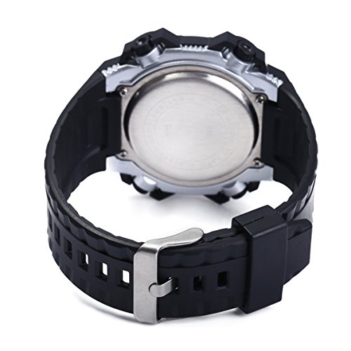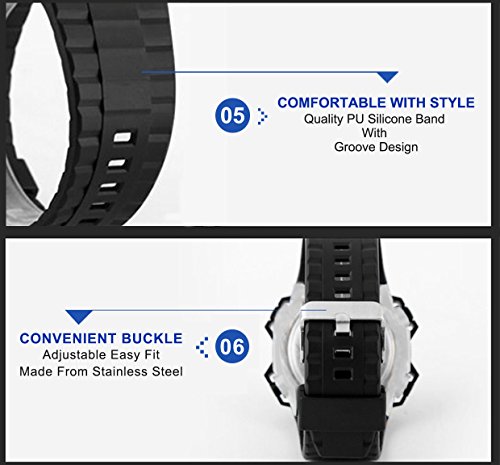 Studio : Aposon Publisher : Aposon Binding : Watch Product Description Highlights: ? Imported Digital Electronic Movement: provide precise and accurate time keeping ? Key Scratch Resistant Watch Face ? Heavy Duty Shockproof PC Poly-Carbonate Case ? 12/24H Military Time ? Chronograph 1/100 Second Stop Watch ? Comfortable Unique Design PU Silicone Band Strap ? Large Watch Face ? LED Back Light ? Calendar, Month, Date, Week Day ? Alarm and Hourly Chime (SIG, Beep Sound) ? Stainless Steel Back Cover ? 5ATM Waterproof: 164 Ft / 50 M (Please DONOT PRESS ANY BUTTON UNDERWATER.) Long time underwater activity such as diving will shorter watch life) Material: ? Case Material: Stainless Steel, PC (Poly-Carbonate) ? Band Material: PU (Polyurethane) Silicone ? Mirror Surface: High Hardness Resin Glass Specification: ? Dial Color: Titanium Black ? Dial Case Diameter: 2.09 inch / 5.3 cm ? Dial Case Thickness: 0.59 inch / 1.5 cm ? Band Color: Black ? Band width: 0.79 inch / 2 cm ? Band Length: 10.43 inch / 26.5 cm. ? Band Clasp Type: Buckle ? Watch Weight: 3 oz / 85 g **NOTE**: ? Watch Face may covered by a protection film, please remove it before use. ? Please DONOT Press Any Buttons Underwater. Also avoid the use in extreme hot or cold temperature. ? If mist or droplets found inside watch surface, please contact manufacturer immediately. ? Clean the watch face and strap by a soft cloth on regular bases is highly recommended. ? Too much water contact will shorter watch life. What Is In The Package: ? Aposon Sport Watch x 1 ? Instruction Manual x 1 0
