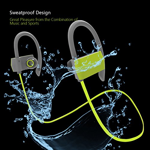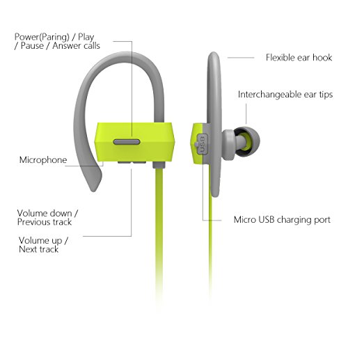Feature : Advanced Technology: Bluetooth 4.1 makes it convenient to connect smart phones and also provides steady Bluetooth signal to support connecting devices over 50 feet away; CVC 6.0 Noise Cancellation technology guarantees high-quality speech output / Sweatproof - IPX4! Protected by Liquipel Nano Coating your Buds withstand sweaty workouts and will survive accidental dropping into water - Guaranteed! / Comfortable Wearing: The Ergonomic design creates ultimate comfort and fit, included S/M/L ear tips achieve better stability and comfort to wear it while playing sports / Powerful Rechargeable Battery: Up to 160 hours of stand-by, up to 7 hours of talk time, up to 6 hours for playing music and 2 hours charging time. / Support Devices: With for iPhone 7/7 Plus, 6/6S Plus, iPad, Samsung Galaxy, Nexus, Android Smartphones and tablets, Windows devices, and all popular Bluetooth devices