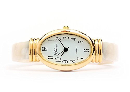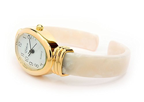 White Pearl Gold Acrylic Band Oval Face Women's Eikon Bangle Cuff Watch
