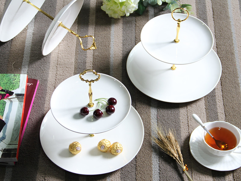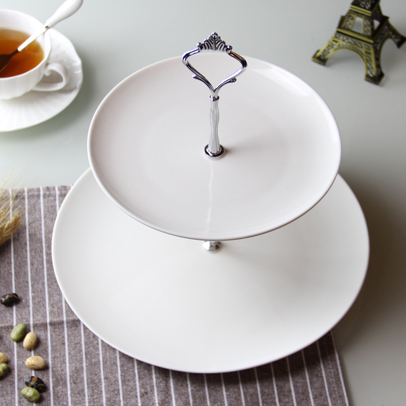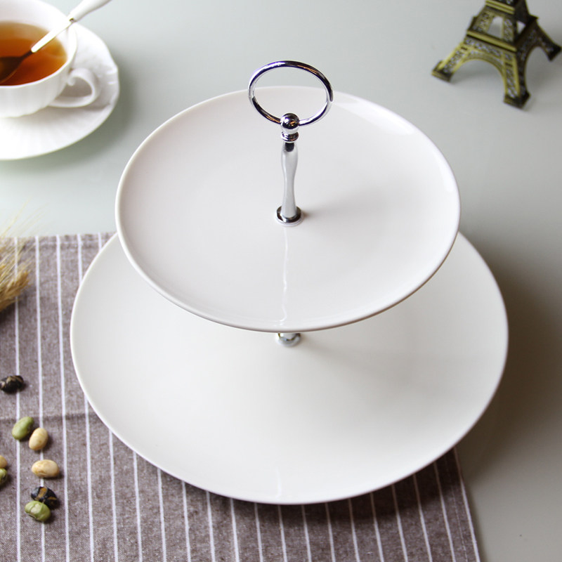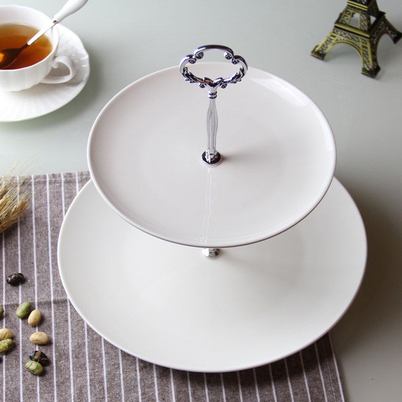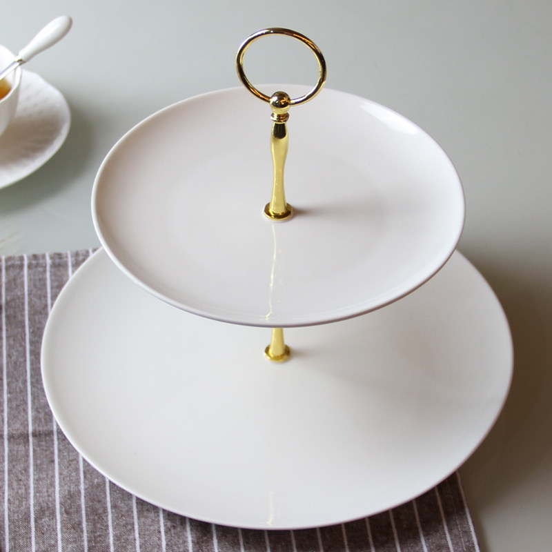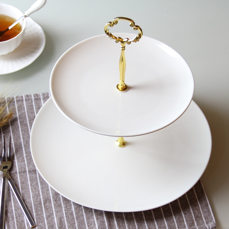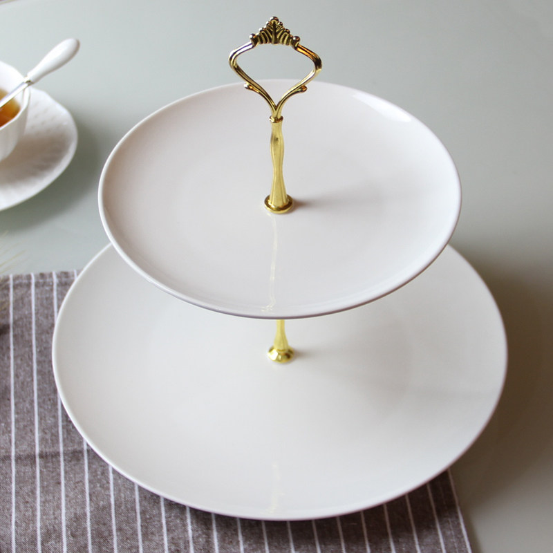 双层水果盘客厅家用 现代欧式蛋糕托盘 创意二层下午茶点心盘架子