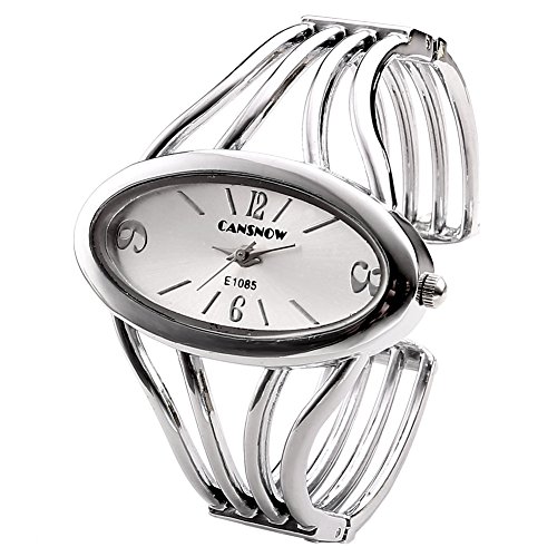 -. Title : Top Plaza Womens Fashion Bangle Cuff Bracelet Quartz Watch, Oval Face Silver Tone - Silver Face