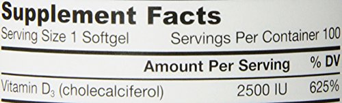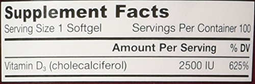 -. Title : Jarrow Formulas Vitamin D3, 2500IU, 100 Softgels