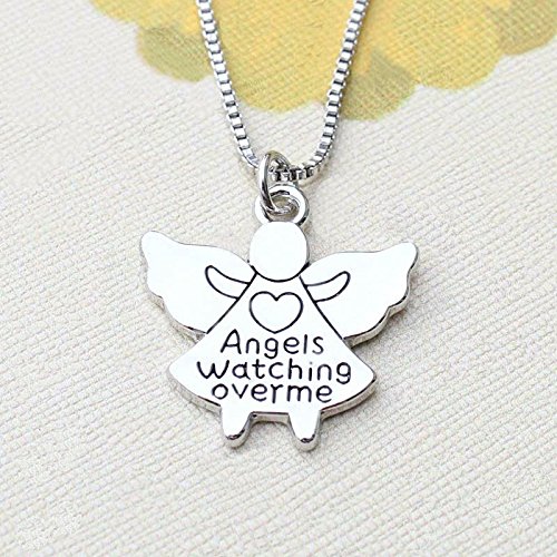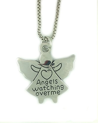 -. Title : Silver-Tone 'Angels Watching Over Me' Engraved Pendant Necklace 2.6 x 2.4cm With 18 Inch Chain Love Heart Heaven God