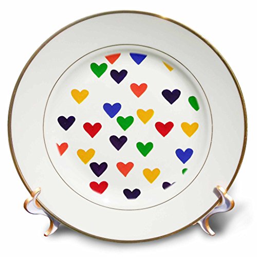 3dRose cp_14313_1 Hearts in The colors of The Rainbow-Porcelain Plate, 8-Inch