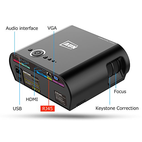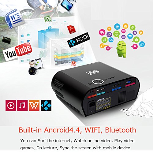 AUN 3200 Lumens 1280x768 LED Projector Android 4.4 WIFI Bluetooth for Home Theater Meeting Office (can 200 inch large screen) Support Miracast EZCast Airplay AC3, With Air Mouse