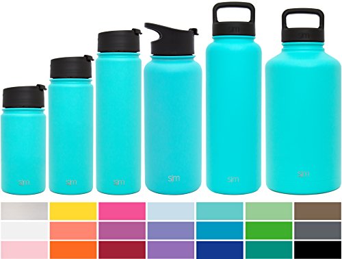 Simple Modern Summit Water Bottle + Extra Lid - Vacuum Insulated 18/8 Stainless Steel Powder Coated - 6 Sizes, 22 Colors
