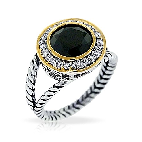 -. Title : Bling Jewelry Sterling Silver Round Simulated Onyx CZ Double Cable Ring