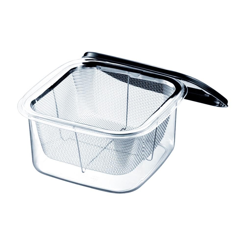 高耐熱素材TPXを使用しているので、油の多い食材でも、電子レンジでのあたためや調理加熱が可能です。 製造国:日本 素材・材質:本体:TPX樹脂蓋:ポリプロピレンざる:18-8ステンレス 商品サイズ:(約)180×180×102mm 重量:約252g 仕様:電子レンジ可食洗機可 ※サプライヤー直送品 ご注文後3~4営業日後の出荷となります【商品名】スマイル・オン 保存容器18cm SOP-18 0617015