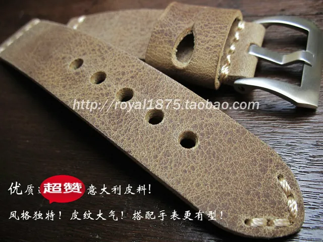 | [해외]손으로 만든 정품 가죽 시계 밴드 브라운 스트랩 시계 밴드 22 미리메터 버클 |
