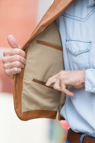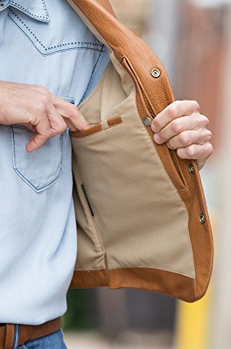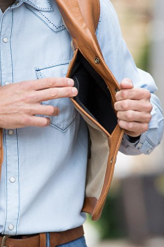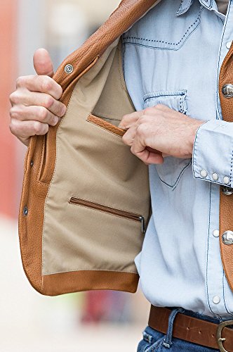 Studio : Overland Sheepskin Co. Publisher : Overland Sheepskin Co. Binding : Apparel Product Description A vintage, Olde West design that's built for service and made to last. Premium full-grain American bison leather gives the Bison Lapel Leather Vest an understated design that earns its merit both outdoors and in. A classic western cut with notch lapel and western yoke back, this robust vest accommodates urban mode or life on the trail with warmth and substance. Lined hand pockets and pocket-watch loop and buffalo nickel snap closures mark this champion design. And the brushed-cotton interior supplies two wallet pockets, one zip pocket, and dual concealed carry pockets and holster. 25" long. Made in Mexico. 0