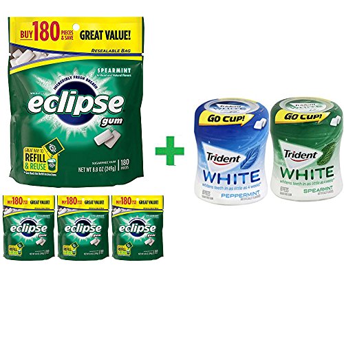 -. Title : Eclipse Spearmint Sugarfree Gum Refill Bag ,180 pcs (4 PACK)+ Trident Go Cup Spearmint 1/60 Count + Trident Go Cup Peppermint 1/60 Count(BUNDLE)
