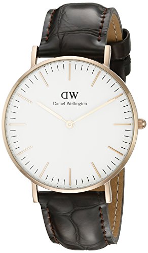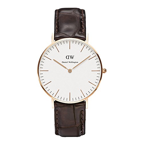 Product Description Brown crocodile leather watch with rose gold tone stainless steel case and white dial fixed with rose gold hands and hour markersDurable and scratch resistant mineral crystalQuartz MovementCase Diameter: 36mmWater Resistant To 99 Feet 0