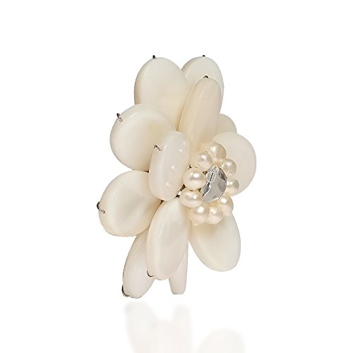 -. Feature : Material: Stainless steel, Jewelry wire, Fashion crystal / Stone: Mother of pearl, Cultured freshwater white pearls | Color: White / Design Measurements: 55 mm (2.17 in) at widest x 55 mm (2.17 in) long / Weight: 21 grams | Style: Handmade, Fashion, Floral / Includes an official 'AERAVIDA Fair Trade Sourcing' Card with certified Seal of Authenticity.
