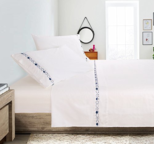 PuTian Home 100% Cotton 400 Thread Percale Embroidery Sheet Set