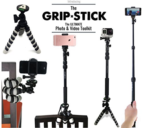 -. Feature : ULTIMATE PHOTO GIFT PACK for New GoPro Hero5 AND iPhone 7 - The #1 preferred tripod accessory used by pro photographers & video makers on YouTube meets the #1 HD Selfie Stick. The Perfect Combo for anyone with a new GoPro, Smartphone or Camera. Mount your phone anywhere and use the included Bluetooth shutter remote to snap photos & videos from up to 30 feet away. It even works with Snapchat. / BEST FLEXIBLE GRIP TRIPOD: 12-INCH - Endless Creativity Awaits. Triples as a 3-in-1 tabletop tripod, mini handheld action stick, and pole grip mount. Perfect for any desk or tabletop, uneven surfaces, or wrapped around the back of a chair, railing, branch, or pole! The bendable arms made with premium rubber grips and sturdy aluminum-alloy core allows you to securely mount your device on virtually anything, worry-free. Even comes with a bonus phone mount with safety strap for extra protection. / HD: HEAVY-DUTY, PREMIUM CONSTRUCTION - Not all camera accessories are created equal! You get what you pay for: be weary of cheaply made flexible octopus gorillapods and selfie sticks on Amazon. Ours is built to last with quality Anodized Aluminum. Compact & portable, yet heavy-duty professional-level. Never worry about broken camera accessories again. / SIMPLE & PORTABLE, YET PROFESSIONAL - Capture the same professional-level shots as full-size studio tripods for a fraction of the cost. Now you can get the perfect shot for every occasion, wherever you are - there are so many ways to use it: Adventure Travel, Vlogging, YouTube videos, Podcasts, Facebook Life, Instagram, Livestreaming, Selfies, Action Sports, Watersports and more. Completely waterproof and drop-proof so you are free to take the creativity virtually anywhere. / REAL CUSTOMER SERVICE & LIFETIME WARRANTY - The owners of the company will personally respond to every message within 24 hours. If everything isn't what you expected and more, simply contact us and we'll refund your order and thank you for giving us a try :)