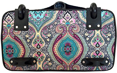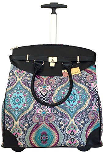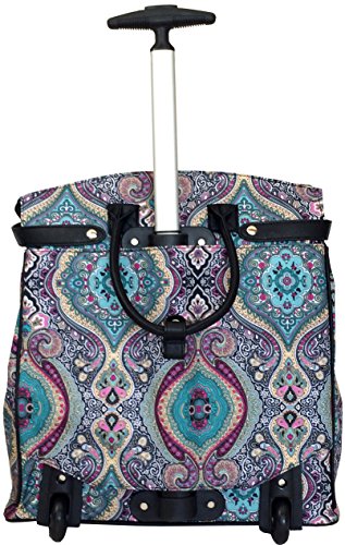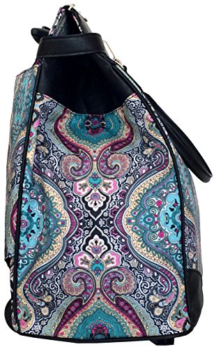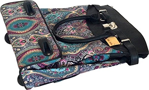 -. Binding : Electronics -. Brand : Trendy Flyer -. Color : Blue, Pink, Purple, White and Black -. EAN : 0746839983250 -. Feature : Color: Blue, Pink, Purple, White and Black / Padded laptop area can fit laptop 12" wide, 12" tall and 2" thick using securing velcro strap/Padded laptop area can fit laptop 12" wide, 17" tall and 2" thick without using securing velcro strap / Material: Polyester Canvas with Polyurethane Trim / Pattern: Taj / Size: 19" H x 17" L x 9" W / Weight: 4.4 lbs / Additional Info: Height From Top of Handle to Floor with Handle Fully Extended: 35" -. Label : Private -. Manufacturer : Private -. PackageQuantity : 1 -. ProductGroup : PC Accessory -. ProductTypeName : CARRYING_CASE_OR_BAG -. Publisher : Private -. Studio : Private -. Title : Trendy Flyer Computer/Laptop Rolling Bag 2 Wheel Case Taj Blue -. UPC : 746839983250