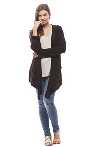 -. Feature : Fill your schedule with chic, day-to-night coziness by slipping into our Pure Comfort Hooded Handkerchief Cardigan. / Featuring fun details like a hood, handy patch pockets and light ribbed knit fabric. This cardigan is sure to add some style to your everyday activites. / Women's: XS=0-2 S=4-6, M=8-10, L=12-14, XL=16, XXL=18 / Machine wash cold / Air dry / Do not bleach / 95% Rayon 5% Spandex