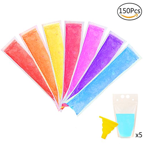 SERONLINE 150 Pcs Ice Popsicle Molds Bags, 5 Beverage Bags, for Making Yogurt Sticks, Fruit Smoothies and other Healthy Snacks, with Funnel