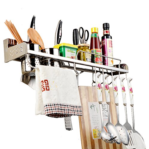 - GREAT STORAGE SOLUTION : Convenient and reasonable wall-mounted rack to store frequently used items for easy access like ingredients, utensils and cookware while not taking much coutertop space, an ideal space-saver for apartments, lofts, and condominiuns.