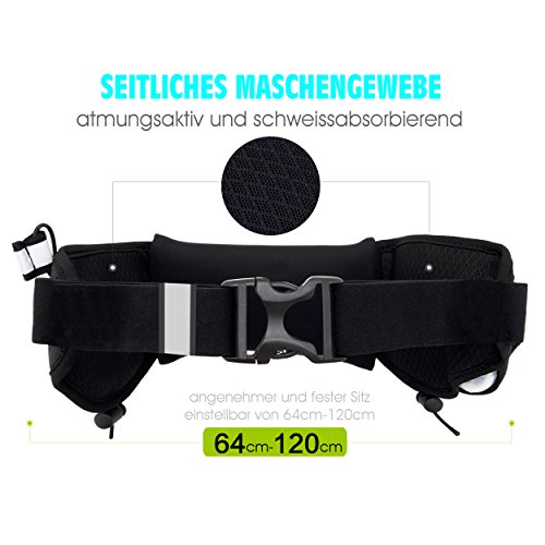 Die hohe elastische Band wird die Gurteltasche wahrend dem Sport gegen Schutteln befestigen. Die Tasche ist fur Taille 64CM-120CM geeignet.