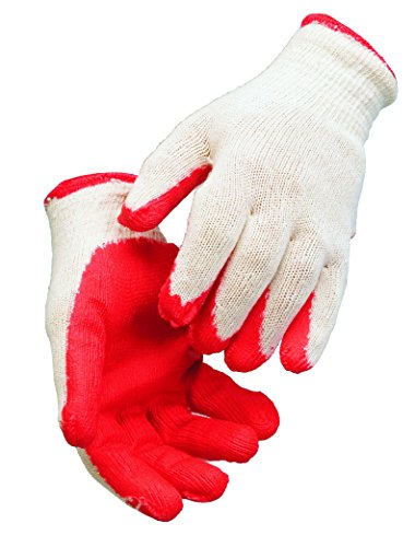 Galeton 6350 Economy Rubber Coated Palm Gloves, Large, White/Red (Pack of 12)