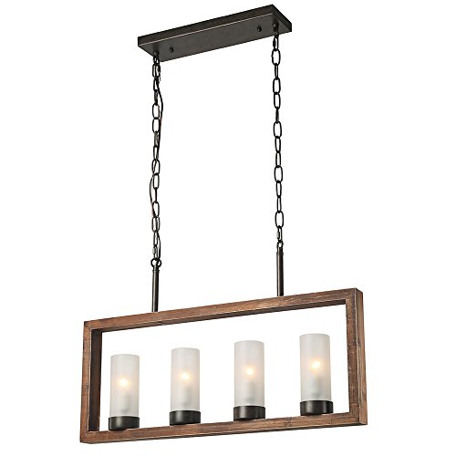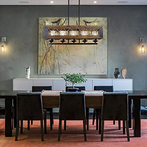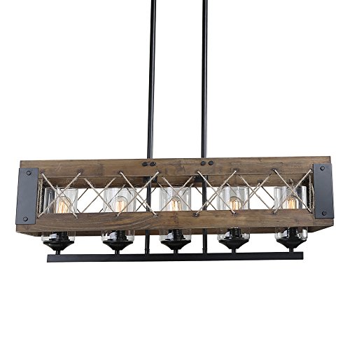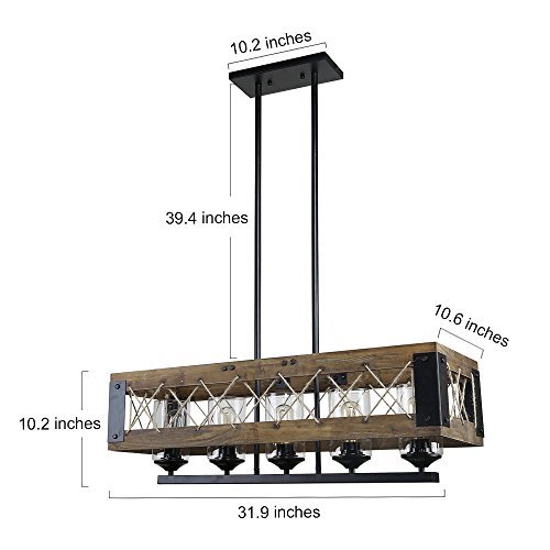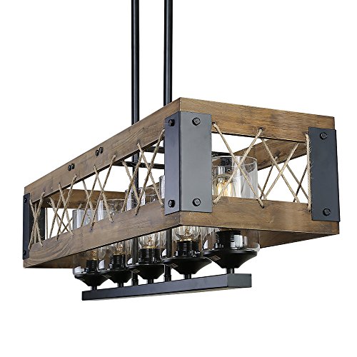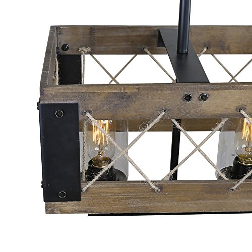 Rustic metal framing, crisscrossed, natural rope and barn style wood framing comes together to create a vintage chandelier that will have all your guests talking. Its classic black iron rods are height adjustable. Whether for use above kitchen islands, pool table rec rooms, or any other interior space, this country style Chandelier will be sure to add that classic feel you've been searching for.