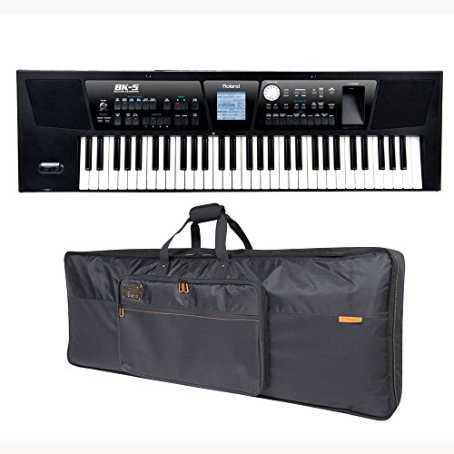 Roland CK-5 Backing Keyboard One keyboard, one keyboardist... With the debut of the BK-5, Roland proudly sets another milestone in the history of auto-accompaniment instruments. The BK-5 features high-quality, fresh sounds combined with an easy user interface and advanced features. It's the perfect partner for the "one-man band" as well as music hobbyists and amateurs. Sound Generator The BK-5 is powered by a state-of-the-art Roland sound engine, packed with over 1,100 great sounds and dozens of drum and percussion kits. The instrument is able to handle 128 voices simultaneously, and is compatible with a variety of voicing formats, including GM2, GS, and XG Lite. Feed the BK-5 a Standard MIDI File, buckle up, and get ready for a great-sounding band! Creative Control In addition to playing MIDI Files with its internal sound generator, the BK-5 can also play and manipulate audio files. Play MP3 or WAV files via USB and use the onboard controls to change key signature and tempo to best suit your vocal range or performance style. You can also use the BK-5's Center Cancel feature to minimize the vocals from pre-existing songs to create instant karaoke-style sing-along tracks. CB-B61 Black Series Keyboard Bag Lightweight and durable, the CB-B61 is perfect for performers and music creators on the go. A rugged exterior and thick internal padding shield your instrument from bumps and bruises, and the convenient shoulder straps make carrying easy. Ideal for everyday use, the Roland Black Series protects your keyboard in style as you travel to make music around town. 0 |