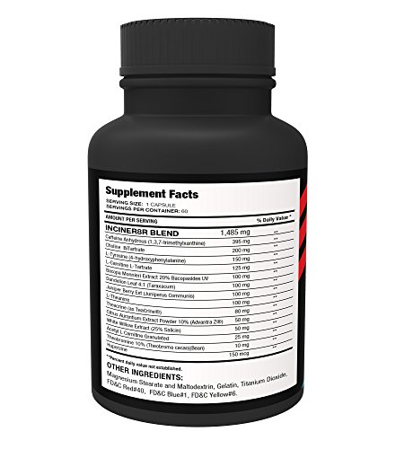 Sneak up on body fat with the thermogenic breakthrough, Capsimax® found in the Inciner8R. Encapsulated, fat-melting beadlets of red hot pepper extracts super-charge thermogenesis. Along with Nature's top six fat-vaporizing compounds, Inciner8R teams two synergistically paired, naturally occurring brain stimulants that fuse with mind-clearing botanicals to calibrate your brain for 'no-excuses' fat loss. Get ready to lose, big time!