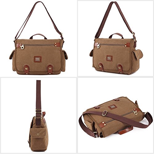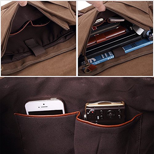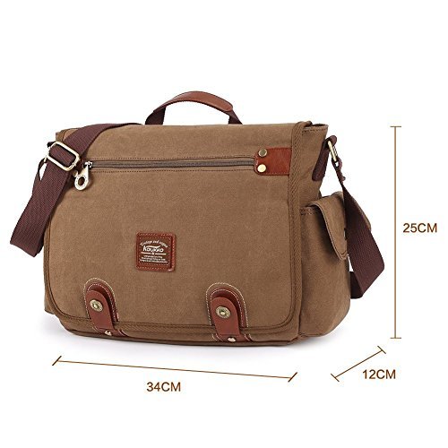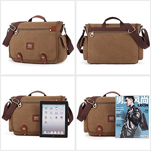 Product Description Structure: 1. Exterior: one frontal zipper pocket, one back big zipper pocket and two pockets on both sides. 2. Outer Material: 16 oz. Heavy Duty High Quality Canvas and Top grate PU Leather Parts. 3. Inner Material: Polyester cotton 4. Hardware: Stainless Steel Parts 5. Adjustable Long Shoulder Strap Measurements: 1. Dimensions: 13.38"*4.7"*9.84" IN / L34*W12*H25 cm 2. Weight: 1.68 pounds (0.75Kg) Product Features: 1. Great Bag for everyday use, with all kinds of daily bits. 2. Takes all kinds of your stuff, like iPad, cellphone, tablet, wallet, books, umbrella, etc 3. The bag can match a variety of different outfits and casual styles 4. Environmentally Friendly,Durable Long-lasting. 5. High quality zipper and Premium leather component, fashionable cool style. Tips: 1. Notice: Hand wash with cold water 2. Due to being measured by hand, the size of the actual item you received could be slightly different from the size above 3. Due to the difference between different monitors and light influence on camera, the picture may be a little different from the actual color of the item, thanks for your kind understanding. 4. 24 Hours services: Please kindly let us know if you have any problems, thanks! 0
