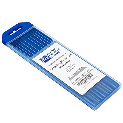 TIG Welding Tungsten Electrodes 2% Ceriated 0.040” x 7” (Grey, WC20) 10-Pack