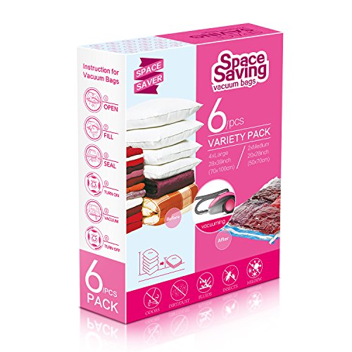 Save More Space in Life How to deal with the massive blankets, comforter or duvet when the summer comes? Squeeze them into closet? No enough space. Put them aside? What a mess! Now Lighting Mall vacuum storage bags help to solve this problem. 6 vacuum pack bags with free hand pump, store more stuffs; Extract air by hand pump we provided or vacuum cleaner (not included); Air-tight bags protects against odor, dirt, bugs and liquids; Store away your clothes, comforter, blankets, duvet, seasonal clothes and more.