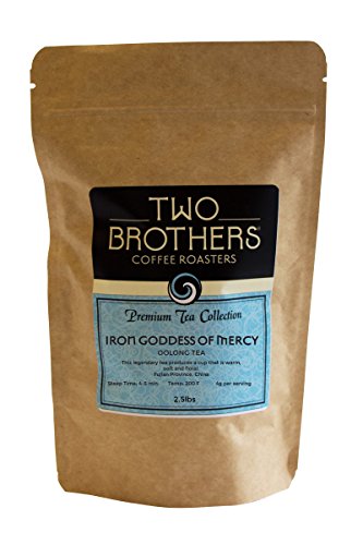 -. Binding : Misc. -. Brand : Two Brothers Premium Teas -. EAN : 0654580022084 -. Feature : PREMIUM TEAS on par with award-winning beers from Two Brothers Brewing Company / OLONG TEA that is from China. This tea produces a cup that is warm, soft and soothingly mineral in texture. / INTRIGUING FLORA aroma, lightly orchid and gentle astringency. / Caffeine Level: Medium / NITROGEN FLUSHED to proling freshness -. IsAdultProduct : 0 -. Label : Two Brothers Coffee Roasters -. Manufacturer : Two Brothers Coffee Roasters -. PackageQuantity : 1 -. ProductGroup : Grocery -. ProductTypeName : GROCERY -. Publisher : Two Brothers Coffee Roasters -. Studio : Two Brothers Coffee Roasters -. Title : Two Brothers Coffee Roasters Premium Tea Collection Iron Goddess of Mercy - Oolong - 2.5lb -. UPC : 654580022084