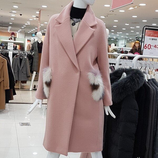 포켓폭스퍼장식에 루즈핏코트네요어깨선없이 떨어지는핏에 일자몸통은 부해보이지않고 넘~편해용캐시미어혼방에 보들하고 좋구요이쁜핑크에 매력있네용^^