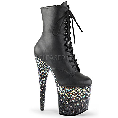 Binding : Apparel Product Description Sensuous. Sexy. Wild. No other adjectives are more fitted to describe the essence of the Pleaser brand of footwear and its extensive range of products. As the ultimate go-to name in sexy shoes, Pleaser has become the standard all others are judged by. This Starsplash 1020-8 Ankle Boot feature front lace-up, hologram stars on platform bottom and inside zip closure. Heel height: 8' (20.25cm). Platform height: 4' (10.25cm). Material: Faux Leather. 0