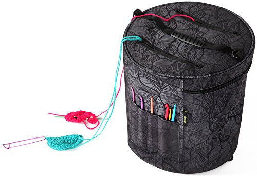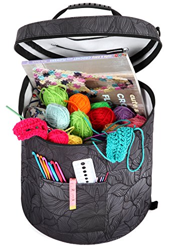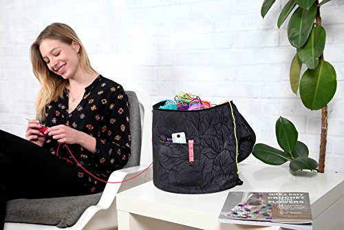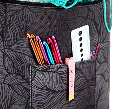 Kenley Knitting Yarn Bag - Wool Skeins Yarn Ball Holder Organizer & Storage Basket - Travel Tote Bag with Slits & Pockets for Crochet Hooks Needles & Accessories - Protects Wool - Prevents Tangling