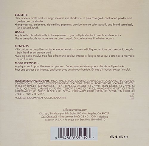 Create eye-catching color combos with just the right mix of matte and shimmer. Featuring six modern matte and six mega metallic shades in range of pink rose golds, cool-toned pewters and golden bronzes that flatter all skin tones, it's the one color palette you need to design eyes that truly dazzle.Feature
