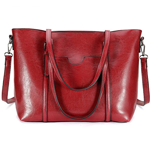 -. Feature : Material: Made of high quality synthetic leather, process with oil wax technology; Durable and fashionable shoulder tote bags. / Dimension(L*H*W): 12.8"*10.8"*4.9" ; Closure: Top zipper closure. / Internal Space: The internal dimension is little smaller than that of outer, and its large capacity can hold your iPad, mobile phone, wallets,umbrella, notebook and more. The Exterior pocket on front side is great for quick access to your keys or cellphone. / Bagerly women tote bags comes with an Adjustable and Removable shoulder strap. You can wear it as a shoulder bag, crossbody bag, top handle handbag, tote purse to meets different needs. / Elegant and fashion design goes well with any outfit in any occasions like work/business/dating/Daily/travel/school, and you will feel comfortable to wear it.