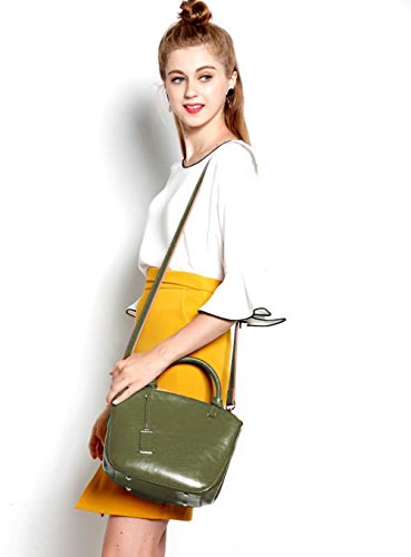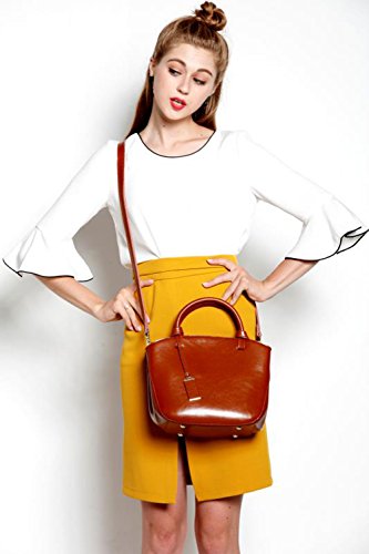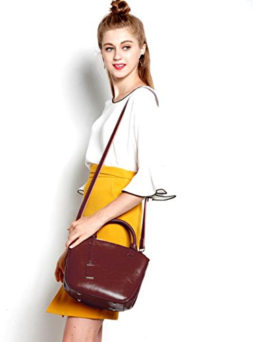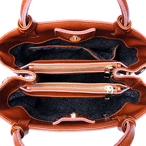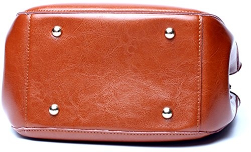 Covelin Genuine Leather Handbag Womens Retro Middle Size Tote Shoulder Bag