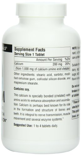 ReleaseDate : 2017-10-04 Studio : Source Naturals Publisher : Source Naturals Binding : Health and Beauty Product Description Specially bonded with amino acids to enhance absorption and assimilation;Mostly known for its role in the formation and structure of bones and teeth;Calcium is important for nerve transmission, muscle movement, and several enzyme systems 0