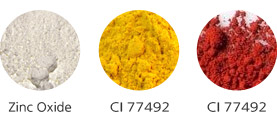 마이카, 징크옥사이드, 황색**철, 적색**철, 티타늄디옥사이드, 울트라마린, 흑색**철