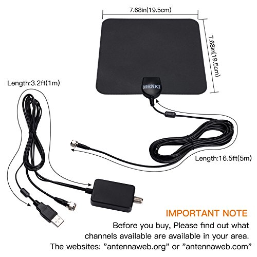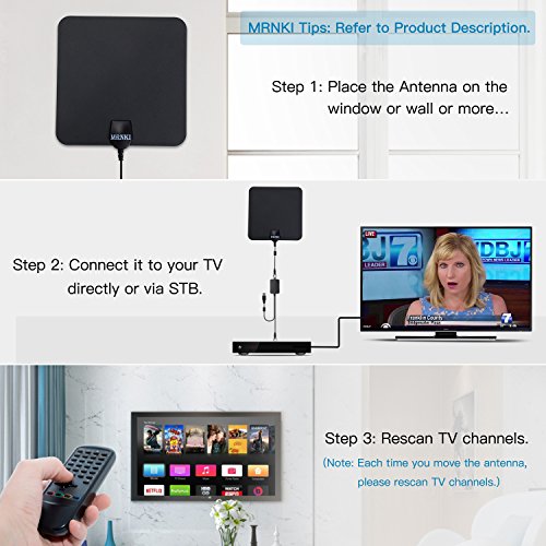 1. Question: House location if has signal? Answer: Visit "antennaweb.org" or "antennapoint.com" to check how many broadcast towers surrounding you within 40 miles range. 2. Question: The HDTV Antenna support ATSC? Answer: Support Format: 720p, 1080i, 1080p | ATSC available Frequency Range: VHF 47-240MHz, UHF 470-862MHz Ensure your TV has a built-in tuner for receiving over-the-air broadcasts. Easy to Set Up 1. Connect to ANT INon the back of any digital-ready TV. 2. Place the antenna in an optimal position, usually on wall or window, hide behind the TV, stand on the table or bookshelf and more. Generally, The antenna should be kept far from disturbance source, big electrical appliances like cooling machine, lift, blower or microwave oven etc. 3. Scan channels by selecting Menu then Channel Searchand and you are ready to enjoy. Wonderful Life HDTV Antenna can pull in all of your local news, weather, sitcoms, kids and sports programs, educational programs etc., absolutely FREE. Enjoy crystal clear HDTV shows. Note: Detachable Amplifier 1. Use the amplifier for the antenna's full 40 mile range, or remove it for better reception if you live nearer to the TV broadcast tower. 2. The HD antenna amplifier boosts the TV antenna with better signal and update butterfly pattern optimizes reception. Channel reception may vary depending on what's broadcasting in your area, distance from broadcast towers, terrain and the surroundings. Any question contact MRNKI store please! We has best service with all customers. Thanks for your support!
